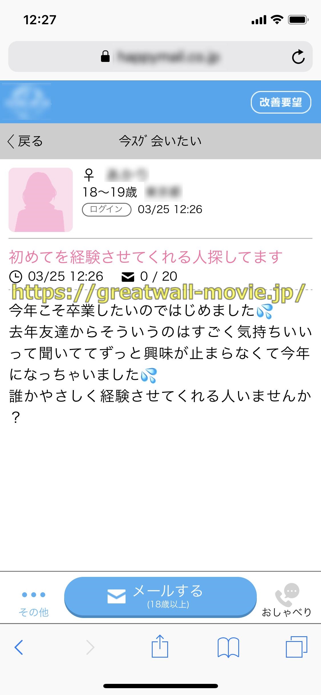 というカキコされたばかりで、まだ誰からもメッセージがきてない書き込みをめっけたので、さっそく
