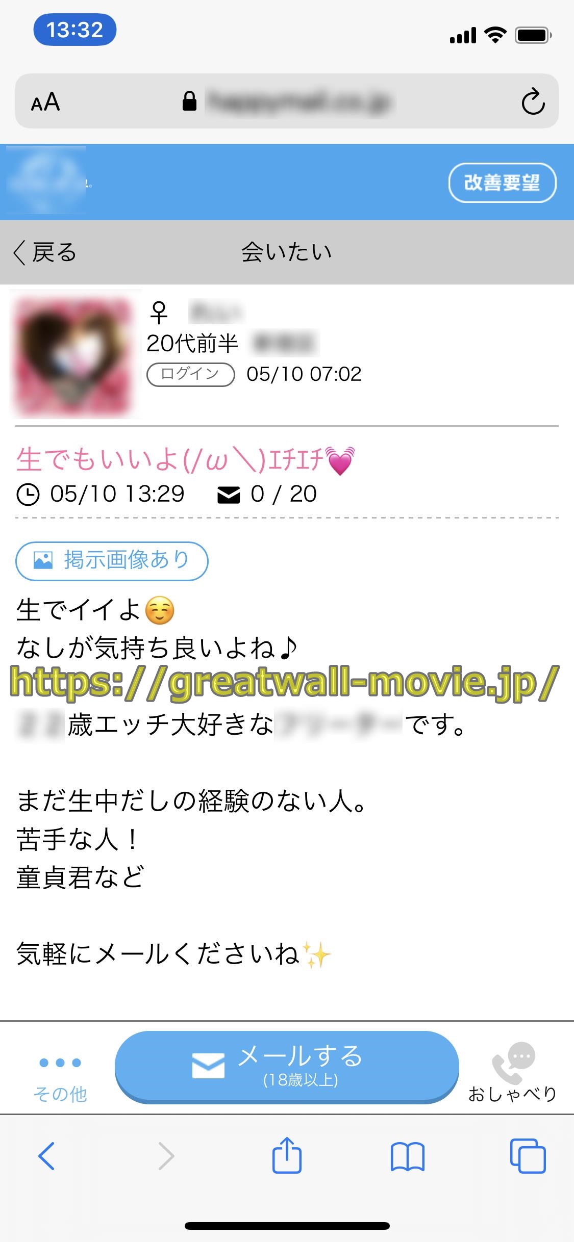 こんな感じでハッピーメール(happymail)のような出会い系マッチングサイトの掲示板に、自らセフレを探しているという書き込みをする女性は、会って今すぐオフパコセックスしたがっている女なので、出会い系コミュの掲示板で見つけたら即メールを送りましょう(^_^)